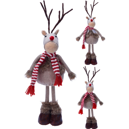 Τάρανδος όρθιος καφέ/κόκκινο polyester 19x14x48cm σε 2 σχέδια.