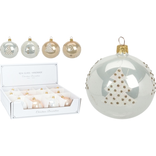 Μπάλα με διακόσμηση γυαλιστερό πολύχρωμο γυαλί Φ8cm σε 4 σχέδια.