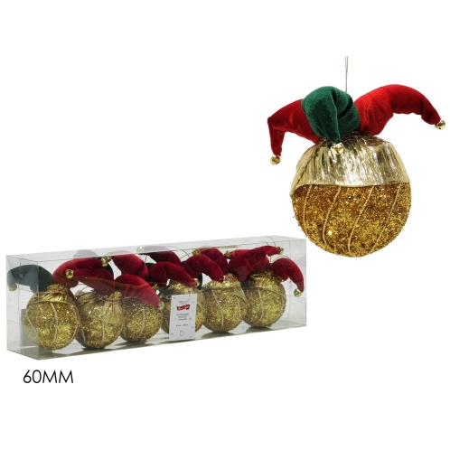 ARTELIBRE Μπάλα με καπέλο γελωτοποιού χρυσό Φ6cm σετ 6τμχ