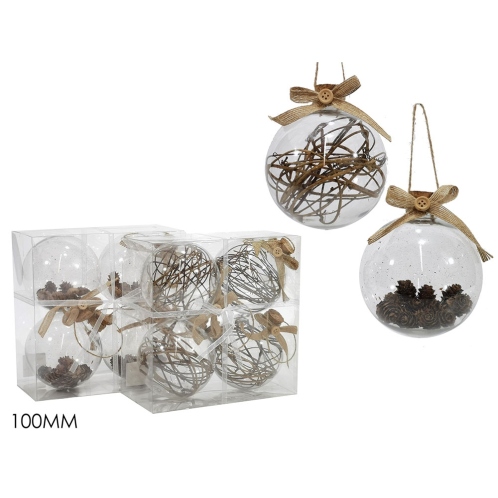 ARTELIBRE Μπάλα Με Κλαδιά/Κουκουνάρια Στο Εσωτερικό Διάφανο Γυαλί Φ10cm Σετ 4Τμχ Σε 2 Σχέδια