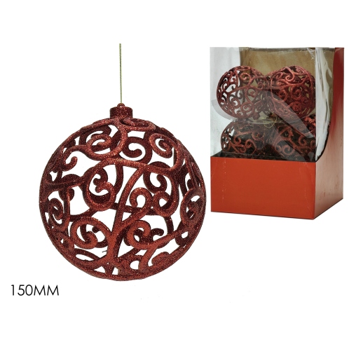 Μπάλα περίτεχνο με glitter κόκκινο πλαστικό Φ15cm.