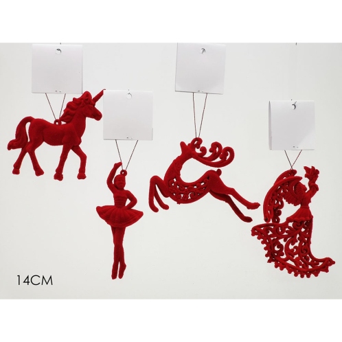 Στολίδι κρεμαστό φιγούρα κόκκινο βελούδο 14cm σε 4 σχέδια.