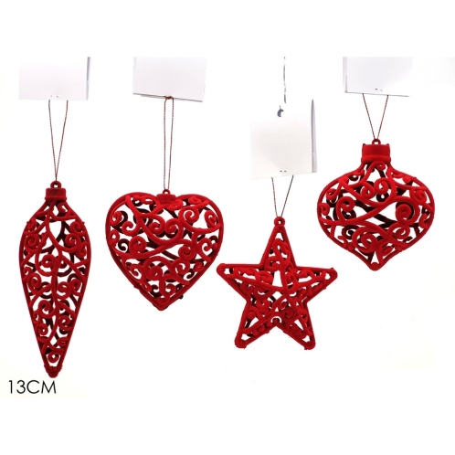 Στολίδι κρεμαστό κόκκινο βελούδο 13cm σε 4 σχέδια.