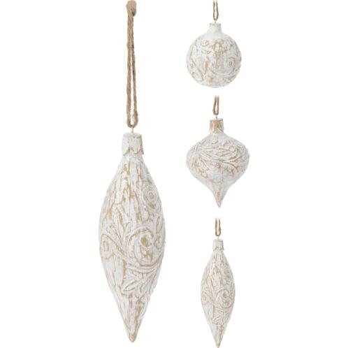 ARTELIBRE Στολίδι Κρεμαστό Με Μπαρόκ Σκαλιστό Σχέδιο Χιονισμένο Λευκό/Φυσικό Ξύλο Σε 3 Σχέδια