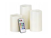 Σετ Φωτιζόμενα Κεριά Led RGB 3 τμχ με Τηλεχειριστήριο, σε Διαφορετικά Μεγέθη