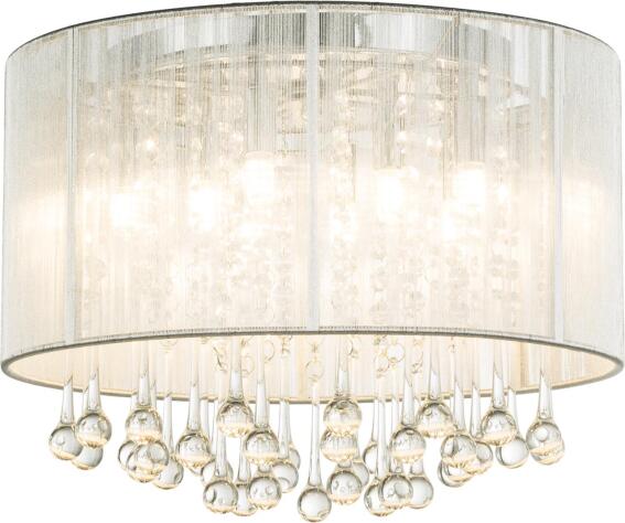 Ceiling Light chrome, silk silver metallic, glass crystals translucent, D:400, H:290, incl. 8xG9 LED 3W 230V, 280lm Source, 110lm Output, 3000K
