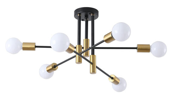 POWERTECH φωτιστικό οροφής HLL-0089, 6x E27, μεταλλικό, χρυσό Κομψό, πολύφωτο φωτιστικό οροφής με προσεγμένο φινίρισμα που θα προσφέρει στον χώρο σας έναν όμορφο τόνο. Το καλαίσθητο σχέδιο του με το μεταλλικό σώμα, σε συνδυασμό με το χρυσό και μαύρο χρώμα του προσδίδει συμβατότητα σε κάθε χώρο, ταιριάζοντας αρμονικά είτε σε μοντέρνο είτε σε πιο παραδοσιακό περιβάλλον. Διαθέτει 6x ντουί τύπου E27 και επιδέχεται λάμπες έως 40W για κάθε ντουί. Για την τοποθέτηση του διαθέτει μια βάση η οποία συγκρατείται με 2 βίδες (συμπεριλαμβάνονται στην συσκευασία). Η βάση είναι ξεχωριστή από το κυρίως φωτιστικό, με αποτέλεσμα η τοποθέτηση του να είναι ιδιαίτερα εύκολη και ακριβής. -6 φωτιστικά σώματα -κομψό design -μεταλλική κατασκευή -προσεγμένο φινίρισμα -εύκολη τοποθέτηση Συσκευασία προϊόντος: Εργοστασιακή συσκευασία σε τυπωμένο χαρτοκιβώτιο Τεχνικά χαρακτηριστικά Voltage: 100-265V, 50-60Hz Watt: 6x 40W max Τύπος: E27 Διάμετρος βάσης: ~ 12cm διαστάσεις φωτιστικού (διάμετρος x ύψος): 83cm x 28cm Χρώμα: μαύρο - χρυσό Περιεχόμενα Συσκευασίας Φωτιστικό Παρελκόμενα εγκατάστασης
