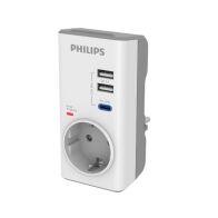 Το πολύπριζο ασφαλείας είναι σχεδιασμένο για να τροφοδοτείτε με ασφάλεια τις σημαντικές συσκευές σας με ρεύμα. Τις προστατεύει από υπερτάσεις και άλλες ανωμαλίες του δικτύου του ρεύματος με το κύκλωμα Power Blocker. Μπορεί να παρέχει έως και 900 Joules. Η Philips σας εγγυάται ότι θα προστατέψει τις συσκευές που τροφοδοτείτε από αυτό το πολύπριζο ασφαλείας και σας παρέχει εγγύηση έως και 50.000 € για οποιαδήποτε ζημιά γίνει στις συσκευές σας από υπέρταση. Διαθέτει διακόπτη λειτουργίας, ώστε να αποσυνδέετε τις συσκευές σας από το ρεύμα με μια κίνηση και να εξοικονομείτε ρεύμα όταν δεν τις χρησιμοποιείτε. Διαθέτει 1 USB Type-C με έξοδο 15 W και 4 USB Type-A με συνολική έξοδο 20 W για να φορτίζετε γρήγορα τις συσκευές σας χωρίς επιπλέον φορτιστές.