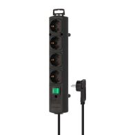 Πολύπριζο 3+1 θέσεων με προστασία υπέρτασης, διακόπτη ON/OFF και καλώδιο 1.5m σε μαύρο χρώμα.