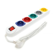 Πολύπριζο 5 θέσεων με προστασία υπέρτασης, διακόπτη ON/OFF και καλώδιο 1.5m σε λευκό χρώμα.