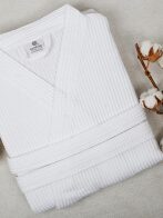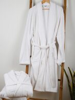 Unisex βαμβακερό μπουρνούζι με γιακά σε λευκό χρώμα, 28x10.5x37 cm L-XL
