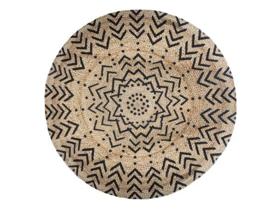 Στρογγυλό Χαλί Σαλονιού από Φυσική Γιούτα με μαύρες λεπτομέρειες σε 2 σχέδια , 120 cm Βέλη