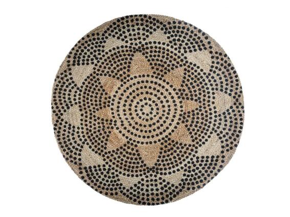 Στρογγυλό Χαλί Σαλονιού από Φυσική Γιούτα με μαύρες λεπτομέρειες σε 2 σχέδια , 120 cm Κουκίδες