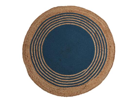 Στρογγυλό Χαλί Σαλονιού από Φυσική Γιούτα σε Καφέ Χρώμα με Μπλε Σχέδιο, 90 cm