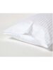 Μαξιλαροθήκη βαμβακοσατέν μεμονωμένη σε λευκό ριγέ χρώμα. Η σατέν ύφανση προσδίδει μαλακή υφή, αντοχή και λαμπερή όψη στο ύφασμα καθιστώντας το ιδανική επιλογή για αίσθηση πολυτέλειας. Ρίγα πάχους ενός εκατοστού, φίνα εμφάνιση, απαλότητα στην αφή, μεγάλη αντοχή του στον χρόνο, ευκολία στο σιδέρωμα, ακοπίαστο ύφασμα, επεξεργασία antipeeling, επεξεργασία μερσεριζέ. Μια πολυτελής επιλογή που θα διακοσμήσει τα δωμάτια του ξενοδοχείου σας και θα ενθουσιάσει τους επισκέπτες σας, χαρίζοντας έναν απολαυστικό ύπνο. Συνδυάστε με ίδιου σχεδίου παπλωματοθήκη και σεντόνια για ένα ολοκληρωμένο αποτέλεσμα.