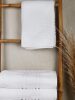 • Μια Μονάδικά απαλή πετσέτα μπάνιου ξενοδοχείου, για τα χέρια, το πρόσωπο και το σώμα με μπορντούρα μαίανδρο, σε λευκό χρώμα.