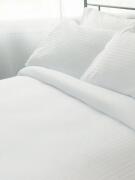 • Σετ σεντόνια βαμβακοσατέν 100%, σε λευκό ριγέ χρώμα, μία επιλογή που θα αλλάξει την όψη του κρεβατιού σας.